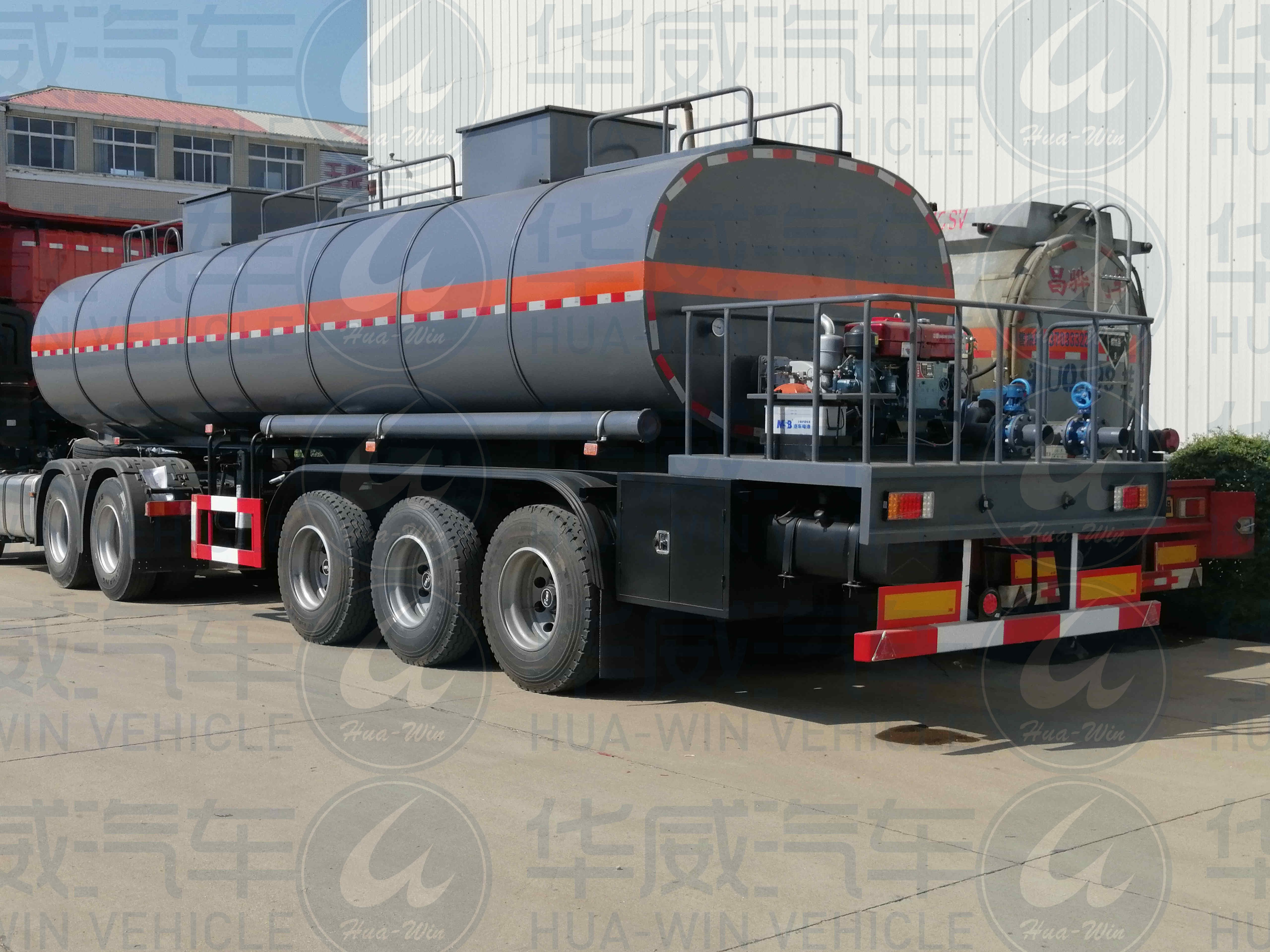 罐體形狀分為橢圓形、方圓形、圓形;罐體可獨(dú)立或分倉(cāng),分裝不同的化工品;內(nèi)部設(shè)置多道全塑防波隔板,選用國(guó)內(nèi)優(yōu)質(zhì)化工液體專用泵,便于液體充裝和卸載。