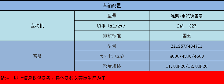 重汽發(fā)動機(jī),十檔變速箱,2.5-7T前橋,7-16T后橋