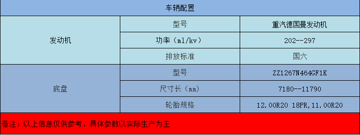 重汽德國曼發(fā)動機,7T-9T前橋,13T-16T后橋。