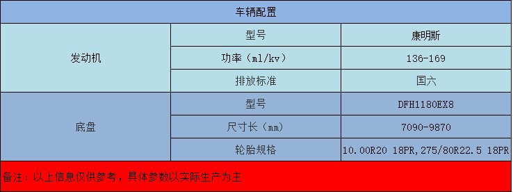 康明斯發(fā)動機(jī),法士特變速箱,7-9T前橋,13-16T后橋